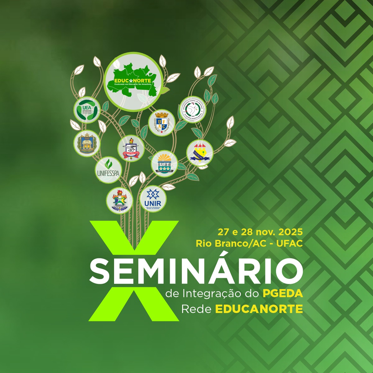 O Programa de Pós-graduação em Educação na Amazônia - Rede Educanorte, convida toda a comunidade acadêmica a prestigiar o XII SEMINÁRIO NACIONAL SOBRE TRABALHO E EDUCAÇÃO, que ocorrerá no dia 23, 24 e 25 de novembro de 2022.